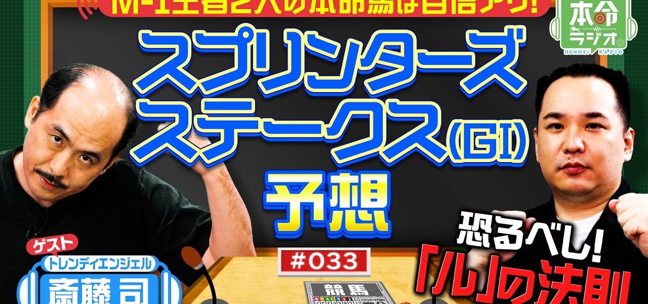 #カンテレ#競馬#本命ラジオ#スプリンターズS#ミルクボーイ内海#トレンディエンジェル斎藤#短距離#サトノレーヴ#ママコチャ#トウシンマカオ#ピューロマジック