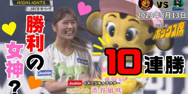 本日の虎ハイライト【16年ぶり10連勝】NMB48渋谷凪咲さんが勝利の女神!?(2023年8月13日 阪神―ヤクルト)