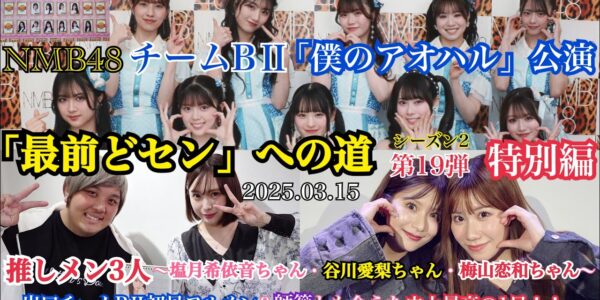 【第19弾/特別編】NMB48 僕のアオハル公演 「最前どセン」 への道 特別編~塩月希依音ちゃん!谷川愛梨ちゃん!梅山恋和ちゃん!推しメン3人&初日フルメン&師範と会えた史上最高の1日!!~