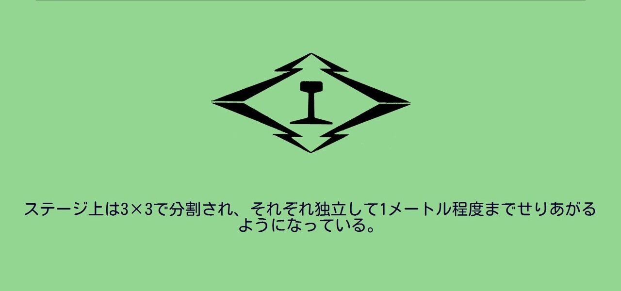 ステージ上は3×3で分割され、それぞれ独立して1メートル程度までせりあがるようになっている。