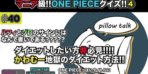 【Youtubeラジオ】ピロートーク#40 第4回!!マニア級!!ONE PIECEクイズ!! ルフィとゾロのサインにはなんて書いてある??? かわむー地獄のダイエット方法も!!!!?