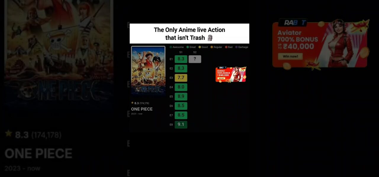 One Piece live-action isn’t trash—8.3 rating proves it! 🔥 Ep. 8 hits 9.1—best anime adaptation yet? Drop a 🔥 if you agree!