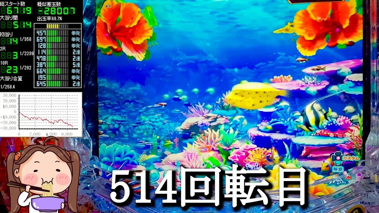 このチャンネルでは、パチンコ海物語実機ライブ配信を、コメント チャット不可で不定…