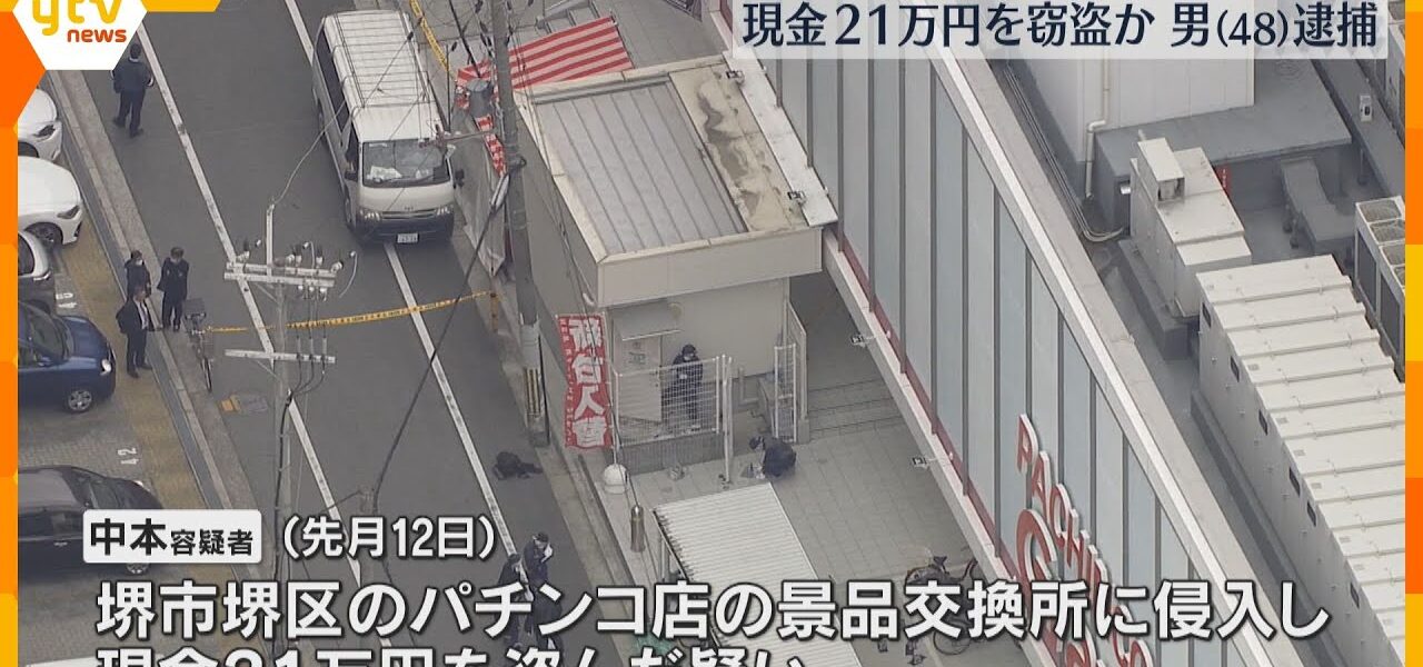 11月、大阪府堺市のパチンコ店で現金21万円が盗まれた事件で、警察は48歳の男を逮捕しました。