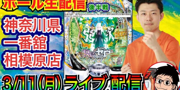 【ライブ実戦】 前半戦 リゼロ2スタート! 途中台移動の可能性もアリ!? 神奈川県 一番舘相模原店で実戦!【パチンコライブ】【パチ7】