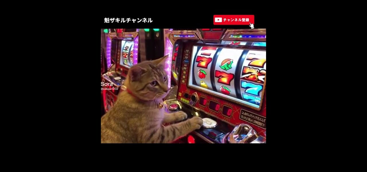 猫ちゃんがパチスロ行って大当たり!そして、大喜びだにゃ〜