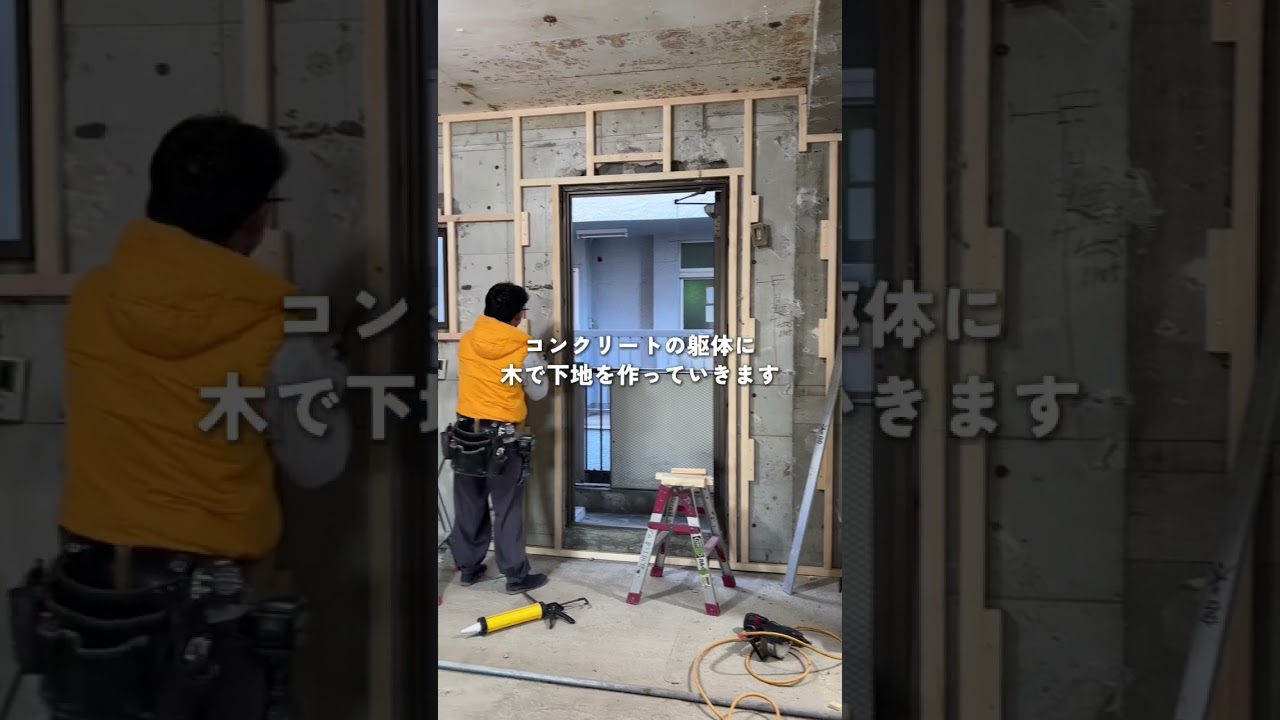 スケルトンリノベーション施工風景🪚5階建てビルの3階住居部分#リノベーション #施工 #工務店 #shorts