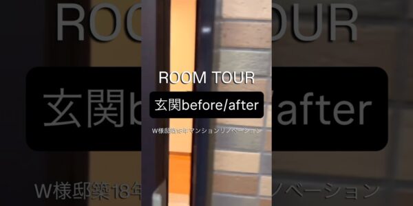 【W様邸築17年マンションリノベーション事例、玄関ルームツアー】before/afterでリノベ前とリノベ後をチェック◎明るくて開放感ある玄関スペースに!家族4人並んでもストレスフリー!オープン収納も