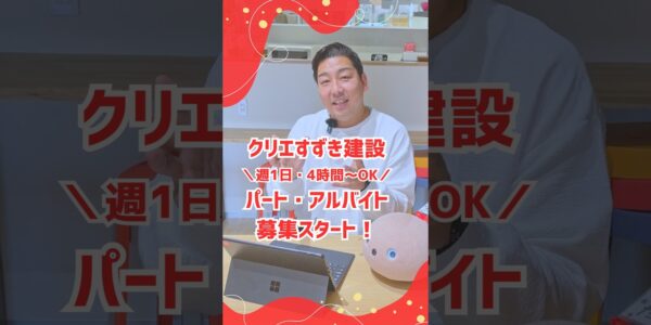 この度、クリエすずき建設は週1日・4時間~OKのパートアルバイト、その名も「メイ…