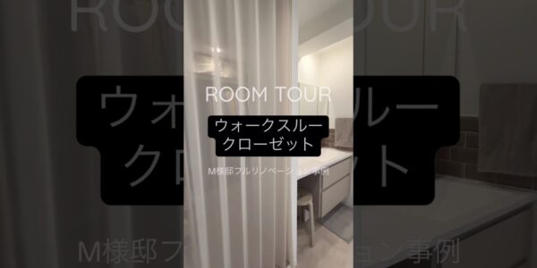 M様邸フルリノベーション事例。 玄関入ってすぐ、洗面台の周りがウォークスルークロ…