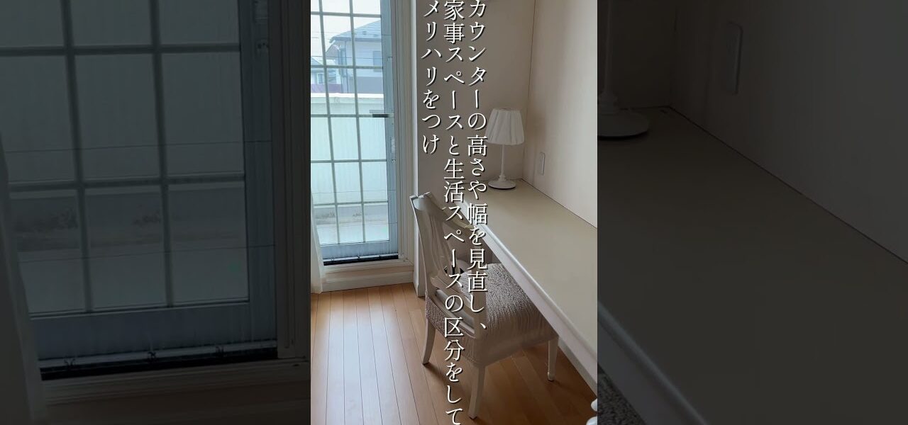 新築当時のままで使いづらかったカウンターの脇に壁を造作、ロールスクリーンで空間を分けることで、洗濯物をたたんだり、アイロンをかけたりできる家事室に変身させ、奥様のテレワークにも大活躍の空間になりました。