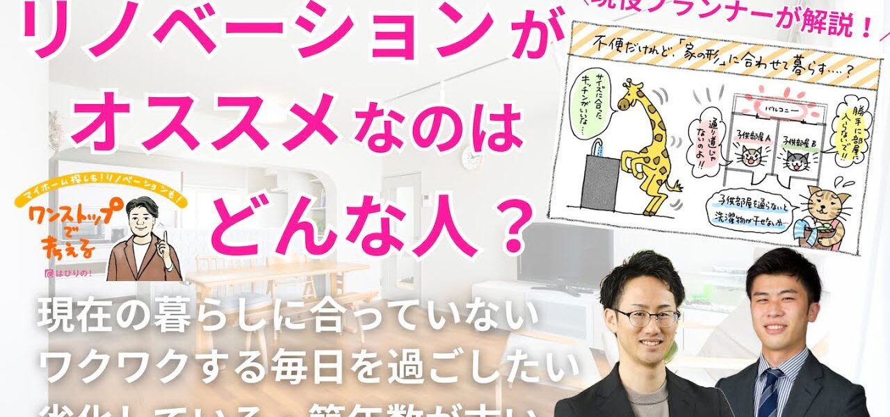 はぴりの!HPの人気ブログ「ワンストップで考える」が、動画シリーズとしてリニューアル!マイホーム探しやリノベーションについて、お客さまに「知っておいて頂きたいホンネ」をお伝えします。