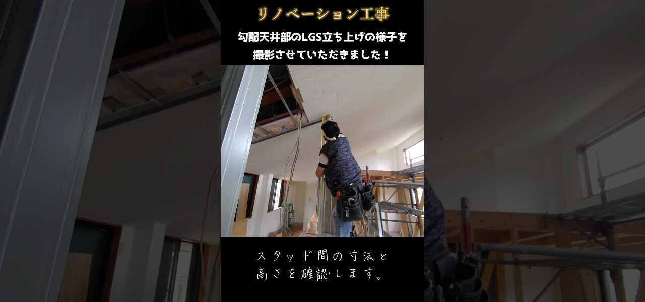 本日は勾配天井部でのLGS下地立ち上げ施工の様子を撮影してまいりました。