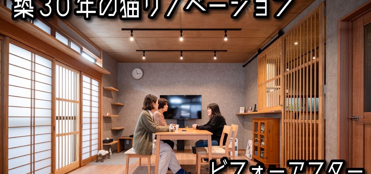 築30年の木造住宅の猫リノベーションの様子を、ビフォーアフターで紹介しています。