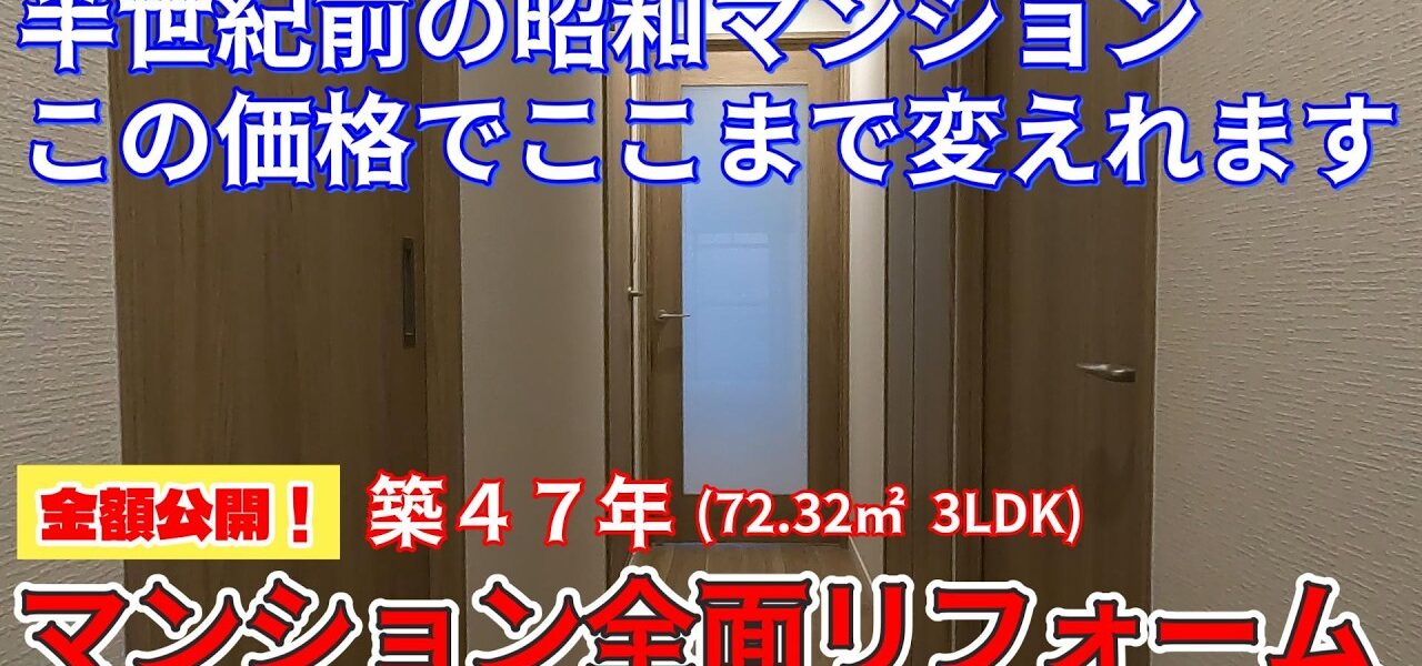今回お届けする物件は1979年建築(築47年)72.32㎡(住居専有面積65.52㎡・バルコニー面積6.8㎡)現状3LDKマンションのリノベーションとなっています。