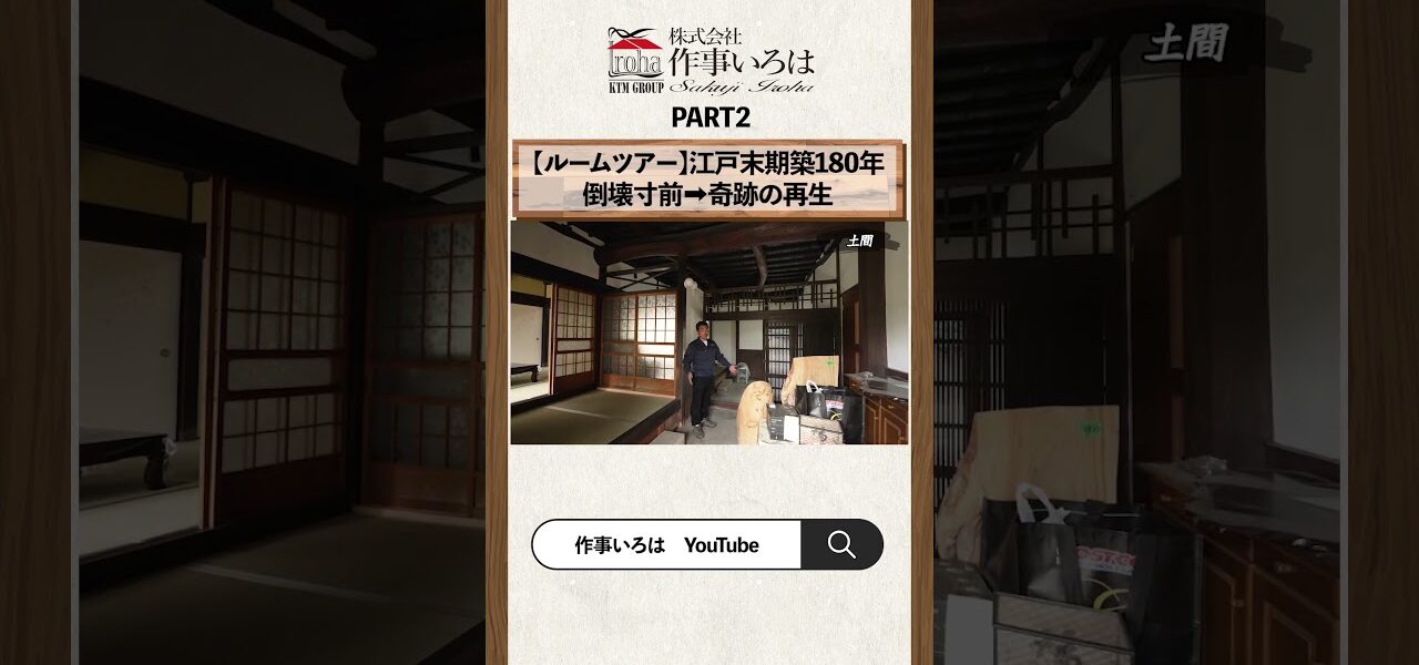 ホームページ動画2【ルームツアー】伝統工法リノベーションの全貌を公開。崩壊寸前の江戸時代古民家が奇跡の再生 動画 2【ルームツアー】伝統工法リノベーションの全貌を公開。崩壊寸前の江戸時代古民家が奇跡の再生 管理人 投稿日: 2026年4月21日 株式会社作事いろは https://sakuji-iroha.jp/ 公式Instagram https://www.instagram.com/sakuji_iroha/ #古民家 #古民家再生 #ルームツアー 共有: Facebook で共有 (新しいウィンドウで開きます) Facebook X で共有 (新しいウィンドウで開きます) X いいね:いいね 読み込み中… 返信する コメントをキャンセルメールアドレスが公開されることはありません。 ※ が付いている欄は必須項目ですコメント ※ 名前 ※ メール ※ サイト 次回のコメントで使用するためブラウザーに自分の名前、メールアドレス、サイトを保存する。 管理人 すべての投稿を表示 投稿ナビゲーション 前の投稿5/10(日)住まいのリフォーム見学会 #船橋市 #マンションリノベーション #リノベーションマンション 次の投稿リフォーム掘りごたつ #リフォーム #模様替え #リノベーション #室内装修 こちらの記事はいかがですか? 動画 解体工事 -店舗リノベ- #浜松工務店 #リノベーション #店舗改装 管理人 2025年10月30日 動画 リフォーム&リノベーションイベント開催しました!!! 管理人 2023年4月6日 動画 【高円寺駅】インダストリアルデザインのリノベーション賃貸 仲介手数料無料 管理人 2023年9月12日 動画 数年後の流行キッズルームはコレ! #リノベーション #リフォーム #ルームツアー #子供 #インテリアデザイン #アニメーション #roomdesign #寝室 #子供部屋 #fyp #foryou 管理人 2025年5月10日