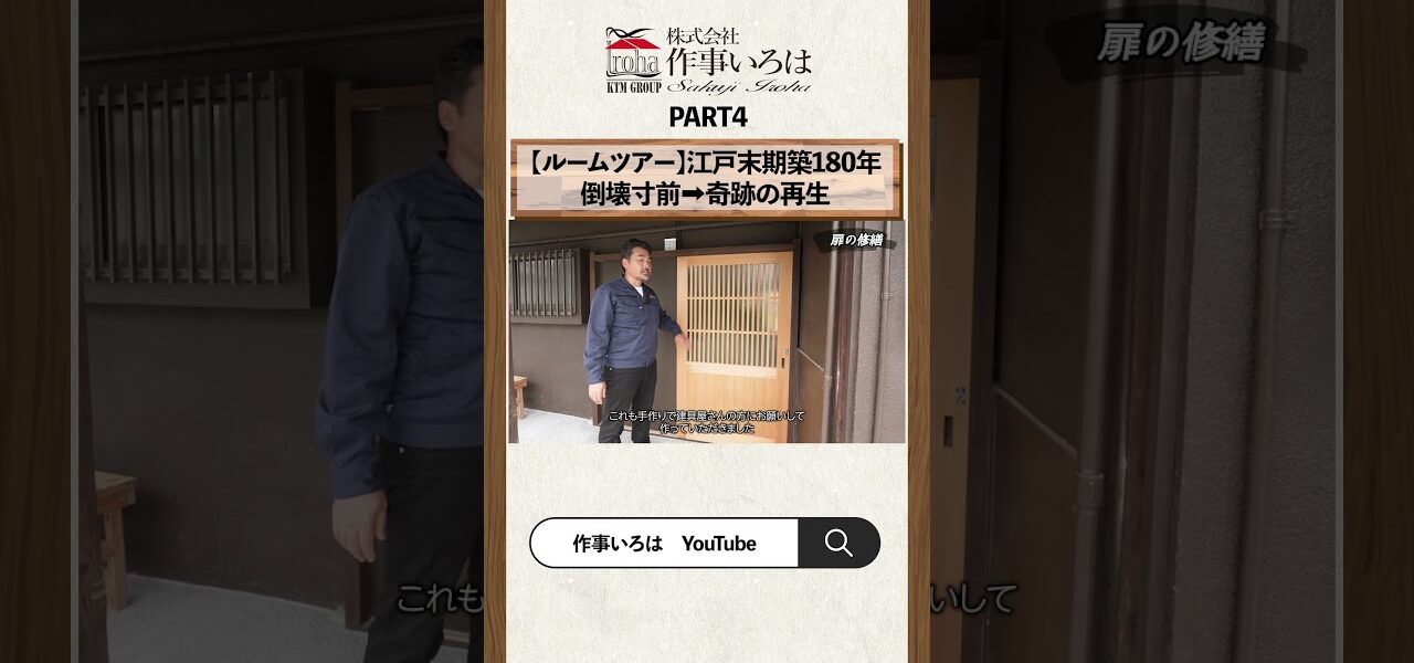 ホームページ動画4【ルームツアー】伝統工法リノベーションの全貌を公開。崩壊寸前の江戸時代古民家が奇跡の再生 動画 4【ルームツアー】伝統工法リノベーションの全貌を公開。崩壊寸前の江戸時代古民家が奇跡の再生 管理人 投稿日: 2026年4月23日 株式会社作事いろは https://sakuji-iroha.jp/ 公式Instagram https://www.instagram.com/sakuji_iroha/ #古民家 #古民家再生 #ルームツアー 共有: Facebook で共有 (新しいウィンドウで開きます) Facebook X で共有 (新しいウィンドウで開きます) X いいね:いいね 読み込み中… 返信する コメントをキャンセルメールアドレスが公開されることはありません。 ※ が付いている欄は必須項目ですコメント ※ 名前 ※ メール ※ サイト 次回のコメントで使用するためブラウザーに自分の名前、メールアドレス、サイトを保存する。 管理人 すべての投稿を表示 投稿ナビゲーション 前の投稿松原市 I 朝日プラザ南大阪ターミナル l 1898万円 l リフォーム済 l 3LDK・WIC#リノベーション#リフォーム#松原市#マンション#中古#大阪#河内天美駅#近鉄南大阪線 次の投稿アドバンスシリーズ #宇都宮市 #建築 #リノベーション #リフォーム #diy #設計士 #スイッチ #照明 #照明スイッチ #panasonic #パナソニック #アドバンスシリーズ こちらの記事はいかがですか? 動画 #リノベーション #renovation #リフォーム #reform #注文住宅 #リノベ不動産 #thanksforwatching 管理人 2025年3月31日 動画 大阪府内S邸部分リノベーション ROOMTOUR 管理人 2022年6月24日 動画 『ルームツアー😆』#不動産 #センチュリー21 #century21 #jtm商事 #リノベーション #リフォーム #新築 #中古住宅 #中古物件 #ルームツアー 管理人 2025年8月18日 動画 【劇的ビフォーアフター】ごく普通のアパートが垢抜けるリノベーション 管理人 2023年10月5日