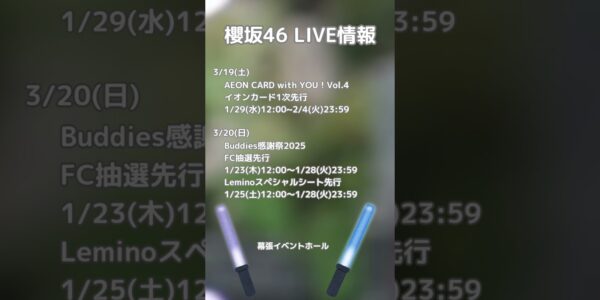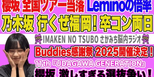 今回は櫻坂46全国ツアーの当落、Buddies感謝祭、乃木坂46与田ちゃんの卒コ…