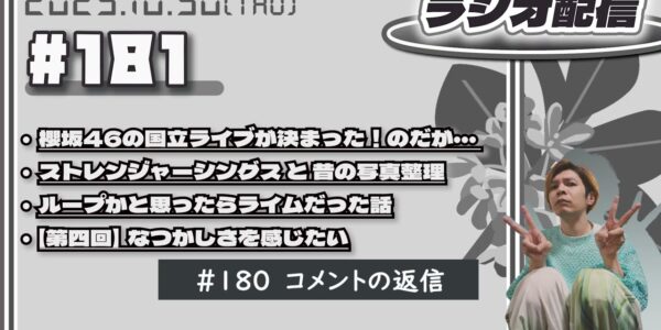 2025年10月30日【ラジオ配信】(#181)櫻坂46の国立ライブが決まった!のだが…/ストレンジャーシングスと昔の写真整理/ループかと思ったらライムだった話/【第四回】なつかしさを感じたい