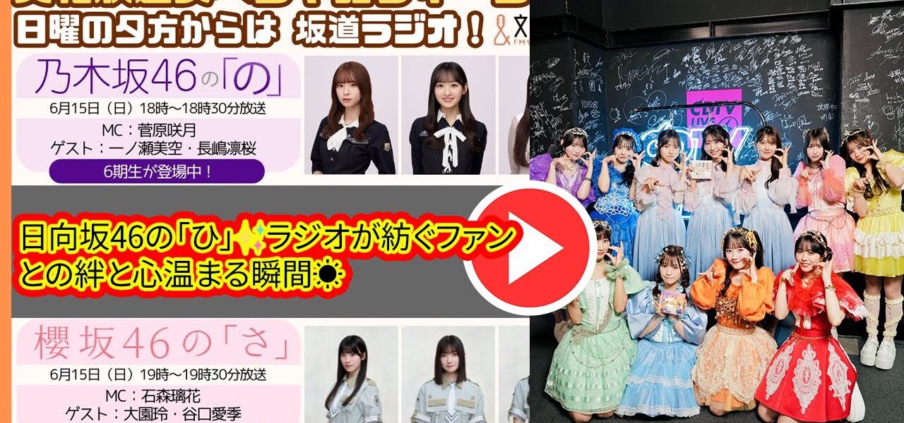 2025年6月15日、18時30分から放送の『日向坂46の「ひ」』📻が、ファンとアイドルの心をつなぐ!FM91.6MHz & AM1134kHzで届く日向坂46の温かな声。文化放送の「坂道ゾーン」で、乃木坂46、櫻坂46と続く特別な時間。上村ひなのMCとゲストメンバーの等身大トークが魅力!💬 この動画では、番組の最新情報、ファンとの絆、アイドルの努力を深掘り。平尾帆夏のブログや齊藤京子との感動エピソードも!