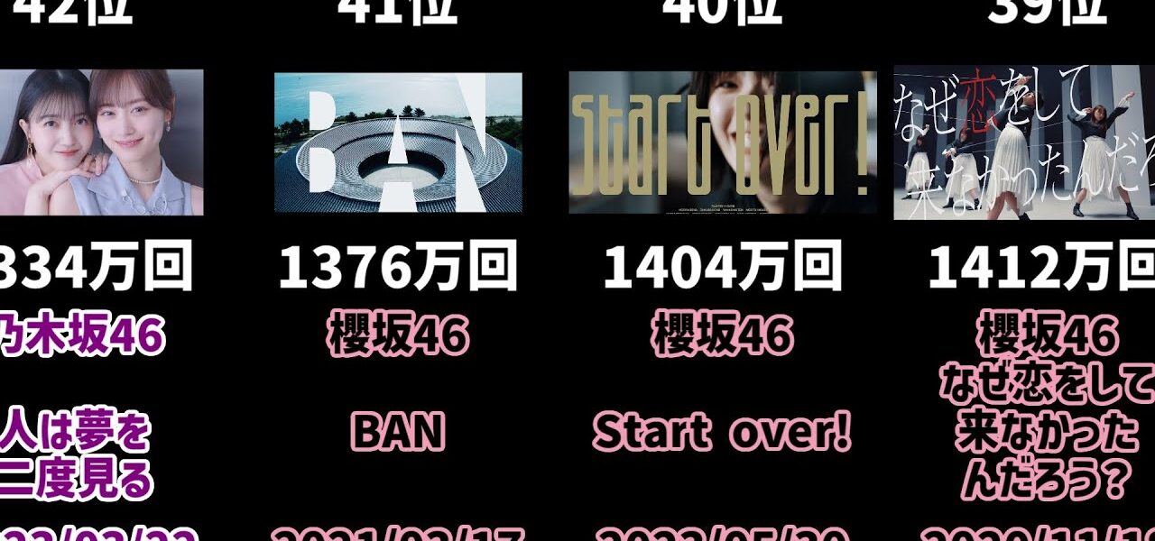 【2025年12月時点】坂道グループのMV再生数ランキング TOP120