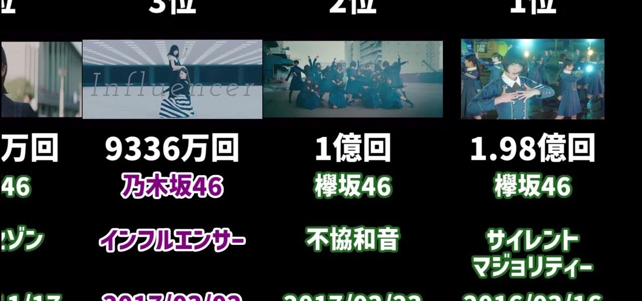 #不協和音【2026年2月時点】坂道グループのMV再生数ランキング TOP120