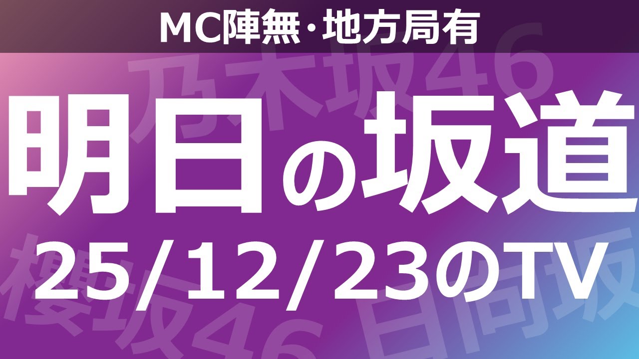 【明日の坂道】【全国】乃木坂櫻坂日向坂出演情報 2025/12/01 【番組出演】