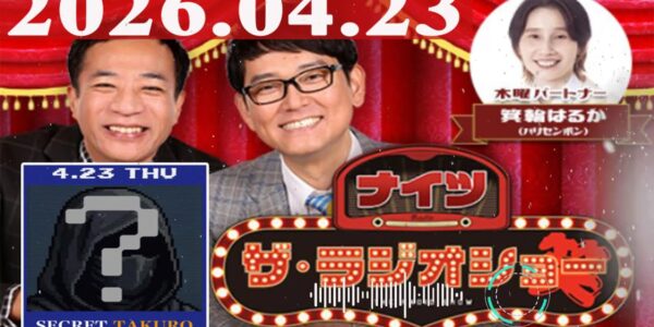 2026.04.23 ナイツ ザ・ラジオショー(Full)【ナイツ、箕輪はるか(ハリセンボン) ゲスト:タクロウ(シークレット)】