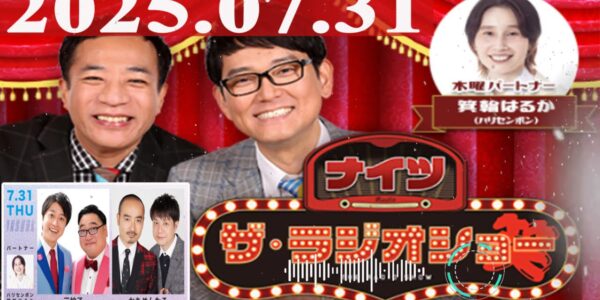 2025.07.31 ナイツ ザ・ラジオショー(Full)【ナイツ、箕輪はるか(ハリセンボン) ゲスト:1時台:三拍子、2時台:かもめんたる】