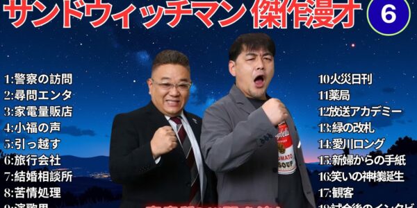 【サンドウィッチマン 傑作漫才】笑いが止まらない!高音質BGMでリラックス&集中 | タイムスタンプ付きで快適に楽しめる!#22