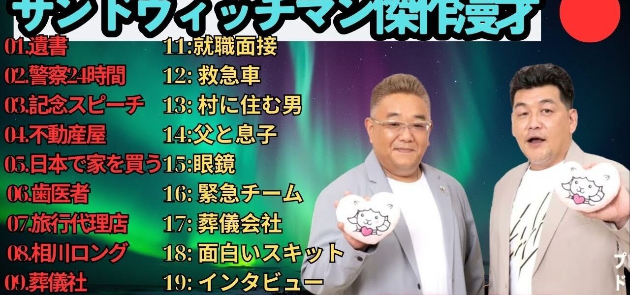 広告無し】サンドウィッチマン 傑作漫才+コント #61【睡眠用・作業用・高音質BGM聞き流し】(概要欄タイムスタンプ有り) サンドウィッチマン (Sandwichman) は、伊達みきお と 富澤たけし による日本のお笑いコンビで、テンポの良い掛け合いと爆笑必至の漫才で多くのファンを魅了しています。1998年に結成され、2007年に M-1グランプリ優勝 を果たし、一気に全国区の人気芸人となりました。漫才やコントはもちろん、テレビ、ラジオ、YouTube でも大活躍し、幅広い世代から支持を集めています。彼らのネタは「笑い」だけでなく、温かさや人間味も感じさせ、唯一無二の存在としてお笑い界をリードし続けています。 この動画では、サンドウィッチマンの魅力あふれる漫才・コント・トークをお届けします。爆笑シーン、感動シーン、そしてテレビやラジオでの人気企画など、サンドウィッチマンを楽しみたい方にぴったりの内容です。お笑い好き、漫才ファン、M-1グランプリをきっかけに彼らを知った方も、ぜひ最後までご覧ください! サンドウィッチマン, Sandwichman, 伊達みきお, 富澤たけし, お笑いコンビ, 漫才, 漫才師, M1グランプリ, M1優勝, 日本のお笑い, 人気芸人, バラエティ番組, お笑い芸人, コント, 芸人動画, 爆笑漫才, お笑いネタ, テレビ出演, 漫才ネタ, ラジオ番組, 日本のコメディ, 人気コンビ, お笑い好き, 笑い, 芸人トーク, 爆笑, エンタメ, Japanese Comedy, Manzai, Comedy Duo, Funny Japan, Standup Japan, Comedy Show, Japanese TV, 漫才コント, 爆笑コンビ #サンドウィッチマン #Sandwichman #伊達みきお #富澤たけし #お笑い #漫才 #M1グランプリ #人気芸人 #お笑い芸人 #コント #爆笑 #お笑いコンビ #バラエティ #芸人動画 #漫才ネタ #ラジオ番組 #日本のお笑い #ComedyJapan #Manzai #JapaneseComedy #FunnyJapan #StandupJapan #ComedyDuo #お笑い好き #エンタメ #サンドウィッチマン2025