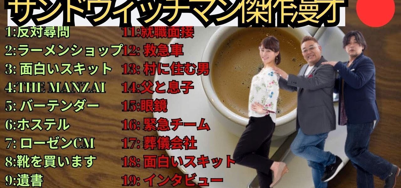 広告無し】サンドウィッチマン 傑作漫才+コント #61【睡眠用・作業用・高音質BGM聞き流し】(概要欄タイムスタンプ有り) サンドウィッチマン (Sandwichman) は、伊達みきお と 富澤たけし による日本のお笑いコンビで、テンポの良い掛け合いと爆笑必至の漫才で多くのファンを魅了しています。1998年に結成され、2007年に M-1グランプリ優勝 を果たし、一気に全国区の人気芸人となりました。漫才やコントはもちろん、テレビ、ラジオ、YouTube でも大活躍し、幅広い世代から支持を集めています。彼らのネタは「笑い」だけでなく、温かさや人間味も感じさせ、唯一無二の存在としてお笑い界をリードし続けています。 この動画では、サンドウィッチマンの魅力あふれる漫才・コント・トークをお届けします。爆笑シーン、感動シーン、そしてテレビやラジオでの人気企画など、サンドウィッチマンを楽しみたい方にぴったりの内容です。お笑い好き、漫才ファン、M-1グランプリをきっかけに彼らを知った方も、ぜひ最後までご覧ください! サンドウィッチマン, Sandwichman, 伊達みきお, 富澤たけし, お笑いコンビ, 漫才, 漫才師, M1グランプリ, M1優勝, 日本のお笑い, 人気芸人, バラエティ番組, お笑い芸人, コント, 芸人動画, 爆笑漫才, お笑いネタ, テレビ出演, 漫才ネタ, ラジオ番組, 日本のコメディ, 人気コンビ, お笑い好き, 笑い, 芸人トーク, 爆笑, エンタメ, Japanese Comedy, Manzai, Comedy Duo, Funny Japan, Standup Japan, Comedy Show, Japanese TV, 漫才コント, 爆笑コンビ #サンドウィッチマン #Sandwichman #伊達みきお #富澤たけし #お笑い #漫才 #M1グランプリ #人気芸人 #お笑い芸人 #コント #爆笑 #お笑いコンビ #バラエティ #芸人動画 #漫才ネタ #ラジオ番組 #日本のお笑い #ComedyJapan #Manzai #JapaneseComedy #FunnyJapan #StandupJapan #ComedyDuo #お笑い好き #エンタメ #サンドウィッチマン2025