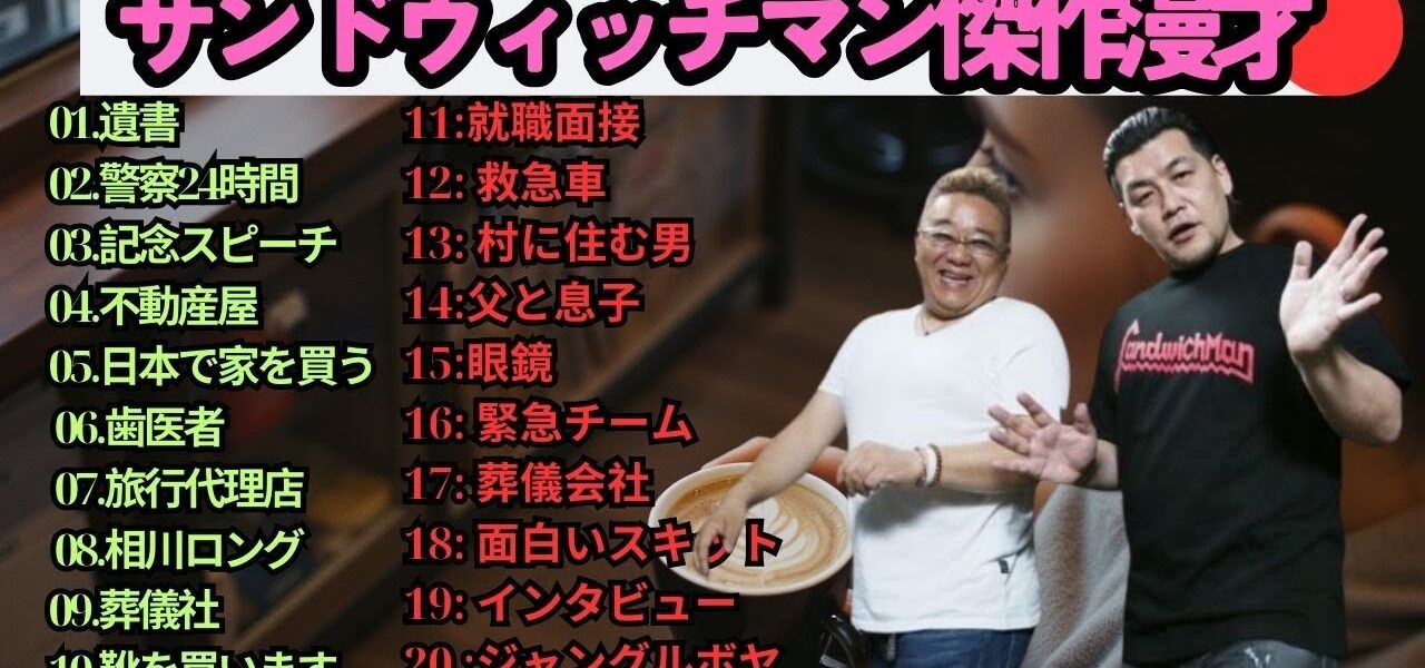 広告無し】サンドウィッチマン 傑作漫才+コント #61【睡眠用・作業用・高音質BGM聞き流し】(概要欄タイムスタンプ有り) サンドウィッチマン (Sandwichman) は、伊達みきお と 富澤たけし による日本のお笑いコンビで、テンポの良い掛け合いと爆笑必至の漫才で多くのファンを魅了しています。1998年に結成され、2007年に M-1グランプリ優勝 を果たし、一気に全国区の人気芸人となりました。漫才やコントはもちろん、テレビ、ラジオ、YouTube でも大活躍し、幅広い世代から支持を集めています。彼らのネタは「笑い」だけでなく、温かさや人間味も感じさせ、唯一無二の存在としてお笑い界をリードし続けています。 この動画では、サンドウィッチマンの魅力あふれる漫才・コント・トークをお届けします。爆笑シーン、感動シーン、そしてテレビやラジオでの人気企画など、サンドウィッチマンを楽しみたい方にぴったりの内容です。お笑い好き、漫才ファン、M-1グランプリをきっかけに彼らを知った方も、ぜひ最後までご覧ください! サンドウィッチマン, Sandwichman, 伊達みきお, 富澤たけし, お笑いコンビ, 漫才, 漫才師, M1グランプリ, M1優勝, 日本のお笑い, 人気芸人, バラエティ番組, お笑い芸人, コント, 芸人動画, 爆笑漫才, お笑いネタ, テレビ出演, 漫才ネタ, ラジオ番組, 日本のコメディ, 人気コンビ, お笑い好き, 笑い, 芸人トーク, 爆笑, エンタメ, Japanese Comedy, Manzai, Comedy Duo, Funny Japan, Standup Japan, Comedy Show, Japanese TV, 漫才コント, 爆笑コンビ #サンドウィッチマン #Sandwichman #伊達みきお #富澤たけし #お笑い #漫才 #M1グランプリ #人気芸人 #お笑い芸人 #コント #爆笑 #お笑いコンビ #バラエティ #芸人動画 #漫才ネタ #ラジオ番組 #日本のお笑い #ComedyJapan #Manzai #JapaneseComedy #FunnyJapan #StandupJapan #ComedyDuo #お笑い好き #エンタメ #サンドウィッチマン2025