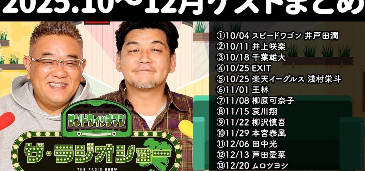 【作業用・睡眠用・ドライブ用】サンドウィッチマン ザ・ラジオショー サタデー 2025年10~12月ゲストショーまとめ