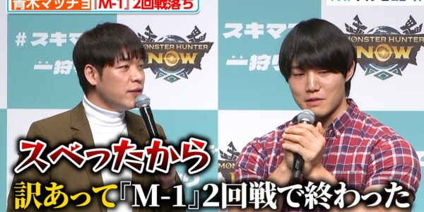 青木マッチョ、訳あって『M-1』2回戦敗退 麒麟川島が冷静ツッコミ 「スベったから」モンスターハンターNow新CM『スキマで一狩り』発表会