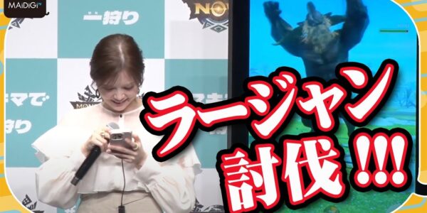 白石麻衣、“ガチハンター”ぶり披露 青木マッチョとラージャンを討伐 「モンスターハンターNow」新CM発表会