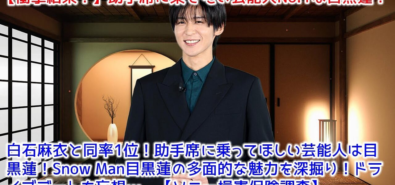 白石麻衣と同率1位!助手席に乗ってほしい芸能人は目黒蓮!Snow Man目黒蓮の多面的な魅力を深掘り!ドライブデートを妄想…♡【ソニー損害保険調査】