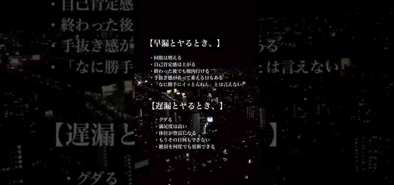 早漏とやるときと遅漏とやるとき