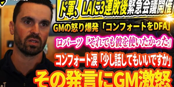 🔴🔴ド軍、LAに3連敗後緊急会議開催!GMの怒り爆発!「コンフォートをDFA!」ロバーツ監督の不可解な弁明「それでも彼を使いたかった」コンフォート涙の訴え「少し話してもいいですか」 その発言にGM激怒