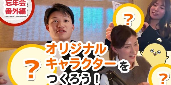 フジナガ、SpecialSession2025、忘年会 番外編。プロ野球選手森下選手・プロゴルファー植手桃子選手とフジナガのキャラクター「ふじもっち」のオリジナル版を作成