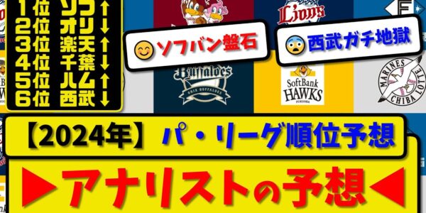 【順位予想】プロ野球パ・リーグ 2024順位予想 3月25日版▶アナリストの予想◀【2ch・5ch】野球反応まとめ【反応集】【なんJ】