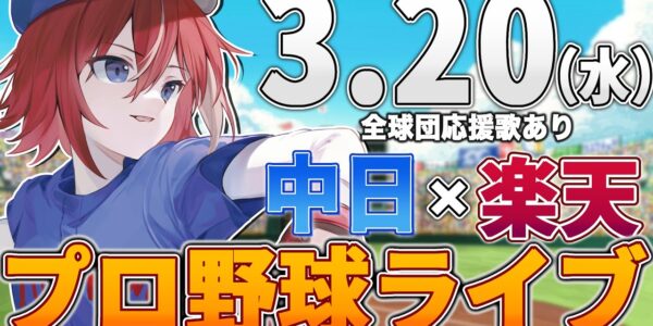 【プロ野球ライブ】中日ドラゴンズvs東北楽天ゴールデンイーグルスのプロ野球観戦ライブ3/20(水)中日ファン、楽天ファン歓迎!!!【プロ野球速報】【プロ野球一球速報】中日ドラゴンズ 中日戦オープン戦