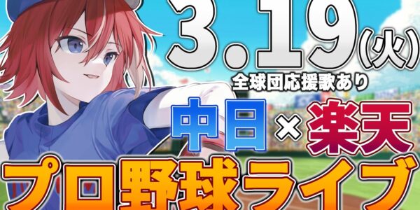 【プロ野球ライブ】中日ドラゴンズvs東北楽天ゴールデンイーグルスのプロ野球観戦ライブ3/19(火)中日ファン、楽天ファン歓迎!!!【プロ野球速報】【プロ野球一球速報】中日ドラゴンズ 中日戦オープン戦