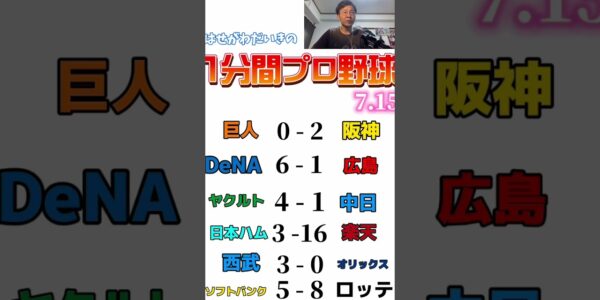 7月15日プロ野球ニュース&MLB 阪神が珍しい勝ち方で巨人に勝利 攻…