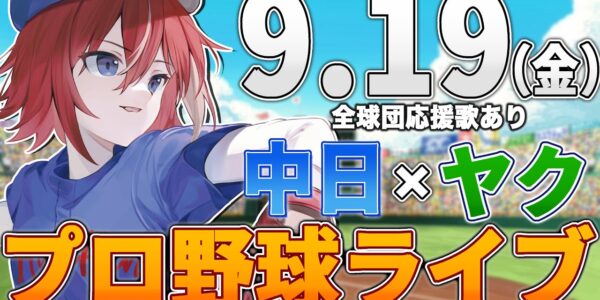 【プロ野球ライブ】中日ドラゴンズvs東京ヤクルトスワローズのプロ野球観戦ライブ9/19(金)中日ファン、ヤクルトファン歓迎!!!【プロ野球速報】【プロ野球一球速報】中日ドラゴンズ 中日戦