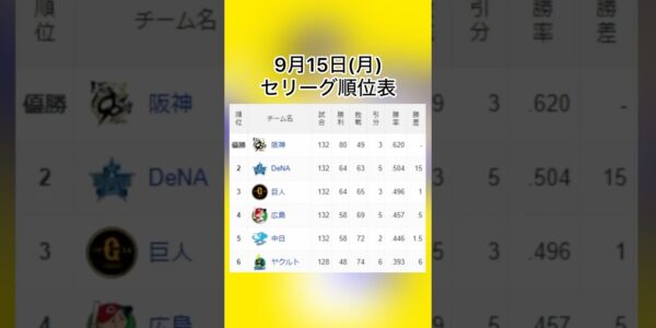 #順位表 #阪神タイガース #読売ジャイアンツ #広島カープ #横浜DeNAベイ…