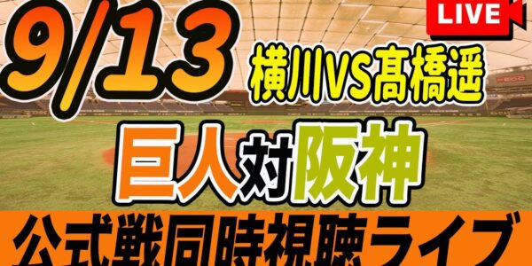 【巨人/同時視聴】9/13巨人対阪神タイガース25回戦を観戦しながら雑談しようライブ配信 予告先発:G横川凱 T髙橋遥人 読売ジャイアンツ プロ野球観戦ライブ