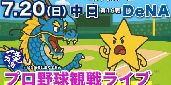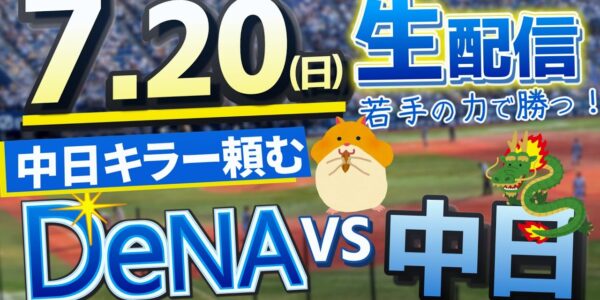 7/20(日)【プロ野球観戦雑談ライブ配信】中日ドラゴンズvs横浜DeNAベイスターズ 第16戦 バンテリンドーム【ラジオ風生配信】