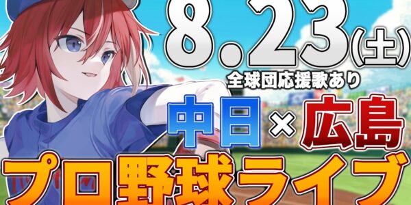 【プロ野球ライブ】広島東洋カープvs中日ドラゴンズのプロ野球観戦ライブ8/23(土)広島ファン、中日ファン歓迎!!!【プロ野球速報】【プロ野球一球速報】中日ドラゴンズ 中日ライブ 中日中継