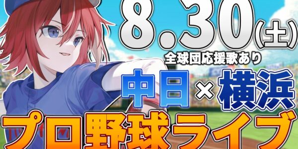 【プロ野球ライブ】横浜DeNAベイスターズvs中日ドラゴンズのプロ野球観戦ライブ8/30(土)【プロ野球速報】【プロ野球一球速報】中日ドラゴンズ 中日ライブ DeNA